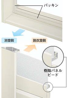 浴室側には、タオル掛けがあり、清掃性UPとしては、カビの発生・浸透を抑え、パッキン内部までカビが入り込みにくい材料を使用しているのでお掃除がとても簡単です。